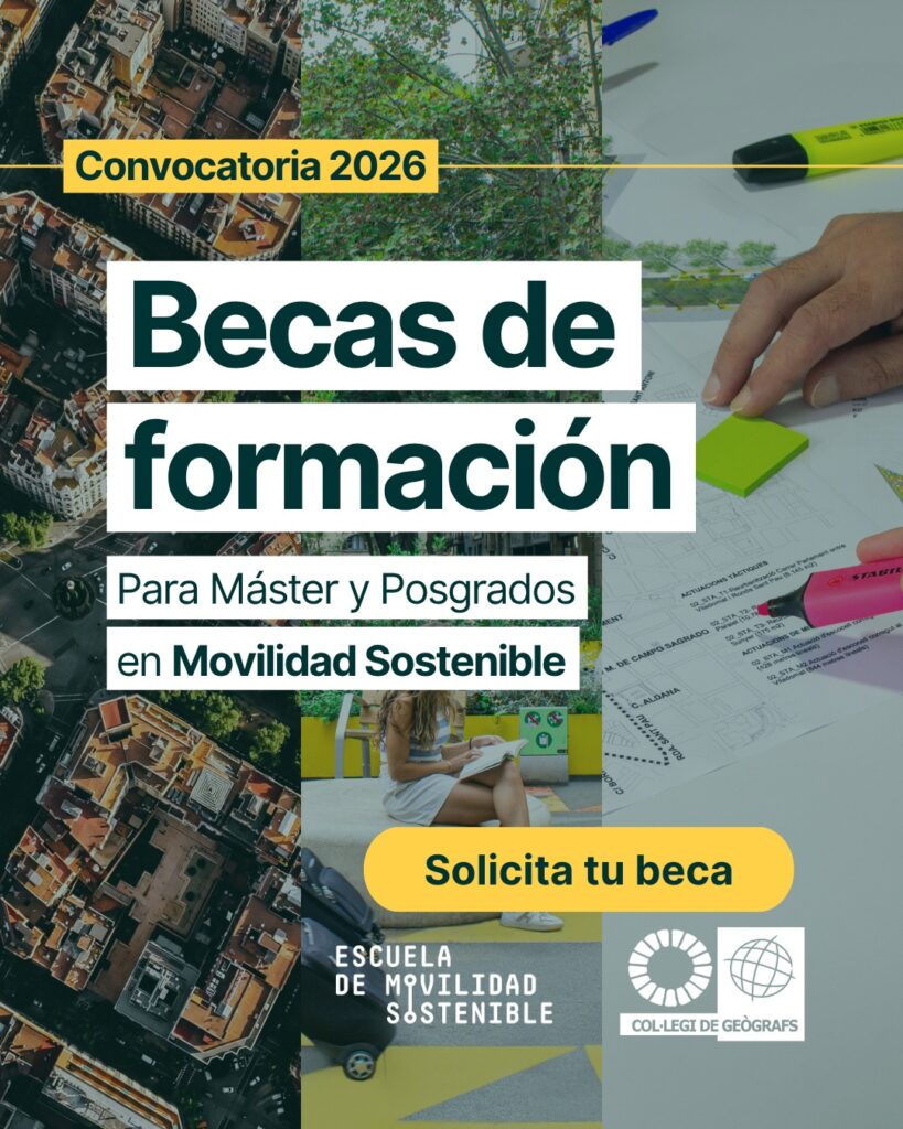 El Col·legi de Geògrafs és una de les entitats col·laboradores de l’Escola de Mobilitat Sostenible, i juntament amb ella presenta la nova convocatòria de beques per als postgraus i Màster en Mobilitat Sostenible de 2026.