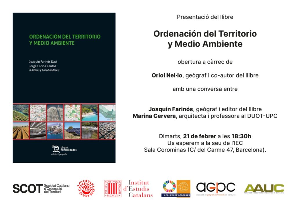 Presentació del llibre Ordenación del Territorio y Medio ambiente Pilar2023-02-15T18:13:21+02:0015/02/2023| Dimarts 21 de febrer a les 18:30 h Comparteix, escull la xarxa social! FacebookXLinkedInWhatsApp Artículos relacionados Galería El Col·legi de Geògrafs a Catalunya i l’Associació de Geògrafs Professionals de Catalunya us desitja un bon nadal i pròsper 2026 23/12/2025 Galería Webinar obert. Escola de Mobilitat Sostenible. 22/12/2025 Galería Publicació dels llistats definitius de Pèrits Geògrafs 2026 18/11/2025 Galería Carme Montaner: “La transformació de la Cartografia” 04/11/2025 Galería III Jornades Cerdà 20/10/2025